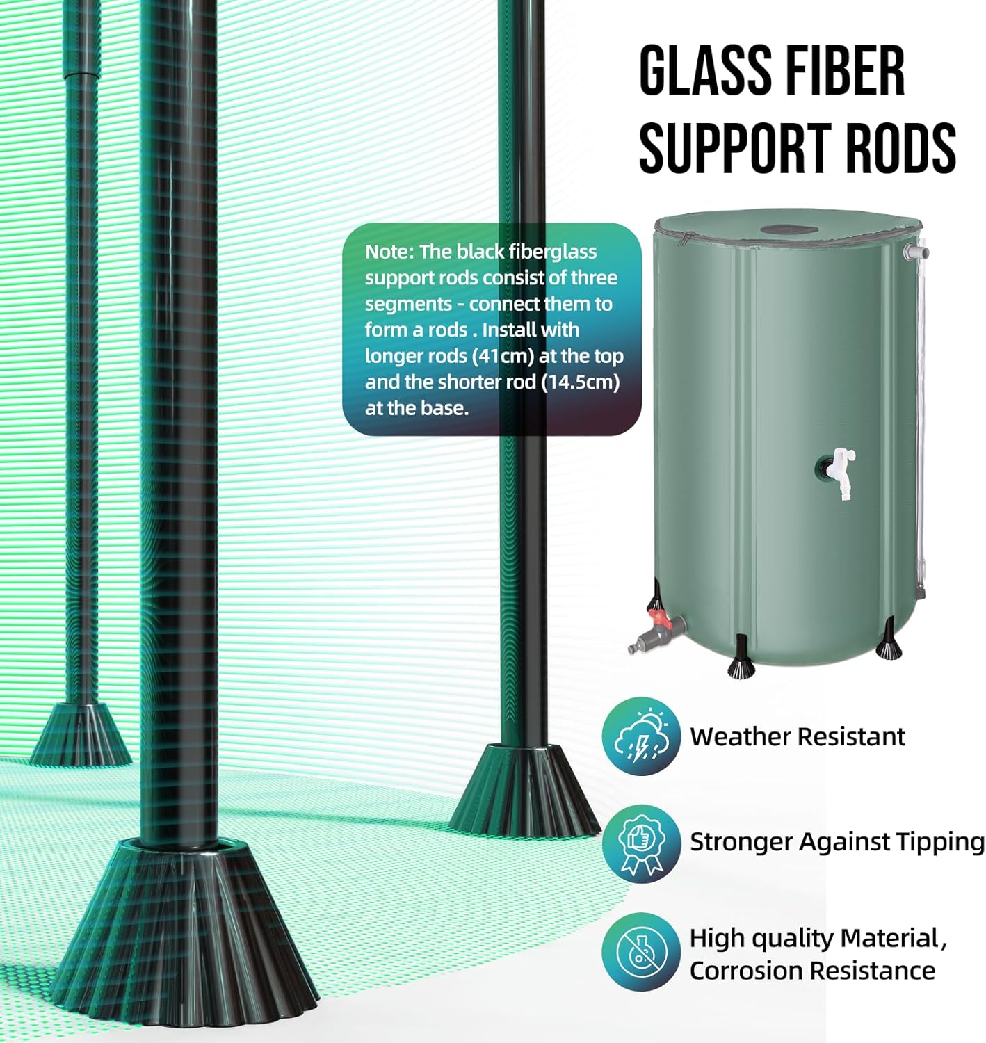 - 【Durable and Sturdy】Crafted from durable 500D 3-ply PVC materials, our Rain Water Collection Barrel are engineered for enduring strength, capable of withstanding the harshest elements.For added stability, our Rain Barrels to Collect Rainwater from Gutter feature stiff fiberglass rod, effectively eliminating any wobbling or tipping issues.