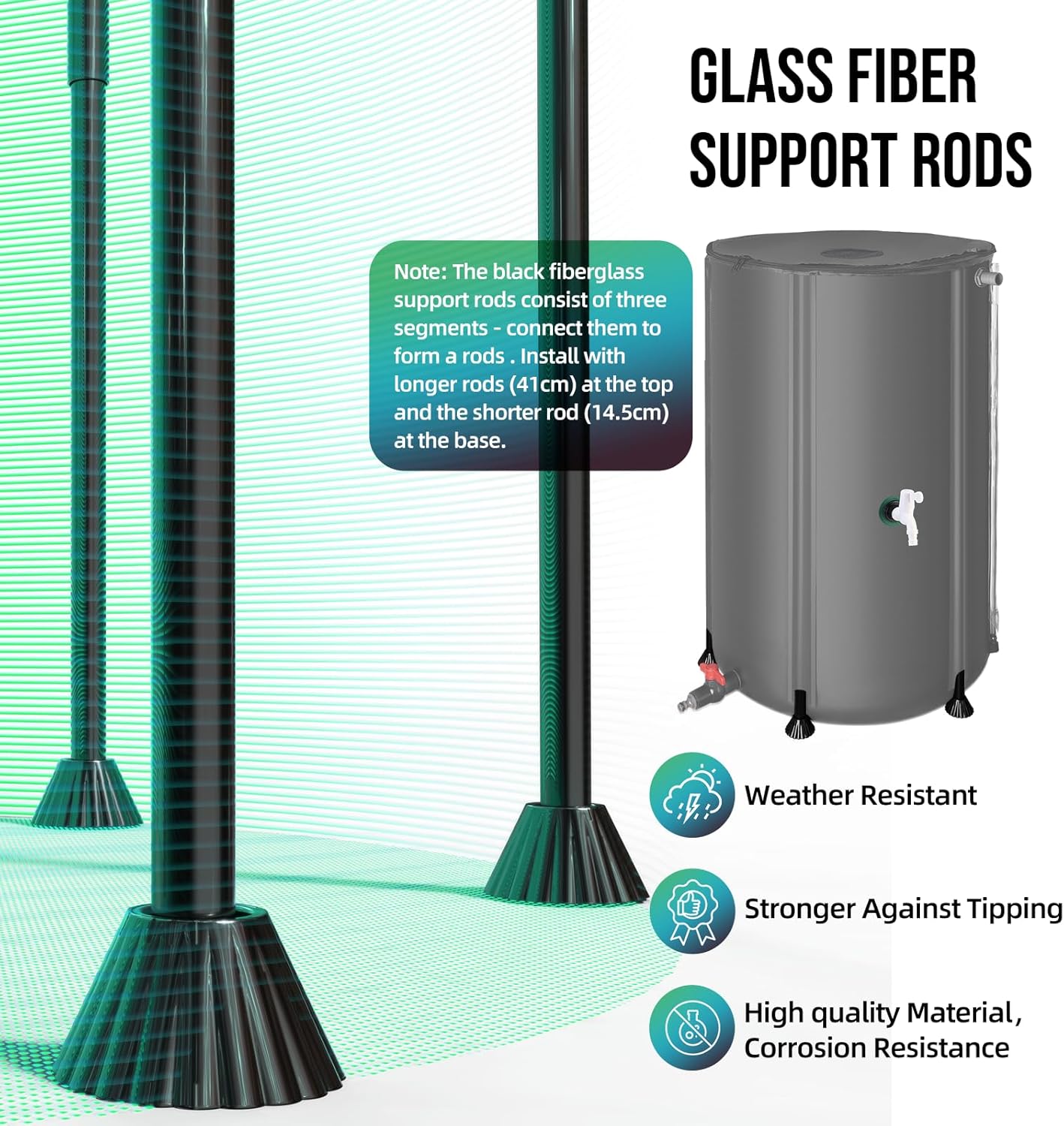 - 【Durable and Sturdy】Crafted from durable 500D 3-ply PVC materials, our Rain Water Collection Barrel are engineered for enduring strength, capable of withstanding the harshest elements.For added stability, our Rain Barrels to Collect Rainwater from Gutter feature stiff fiberglass rod, effectively eliminating any wobbling or tipping issues.