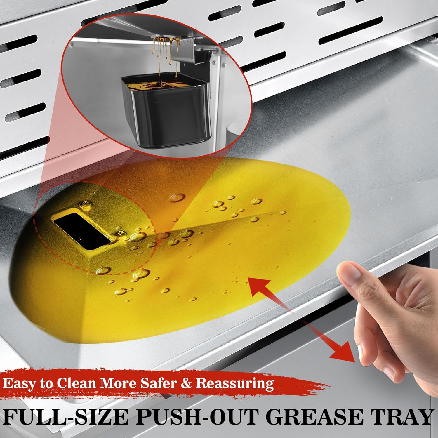 - đ„ ăCommercial-Grade 6-Burner Systemă 5 main burners (60,000 BTU) + 1 dedicated side burner (8,000 BTU) delivering 68,000 BTU total power. Upgraded Convenience: Includes removable grease tray, tool hooks, and a bonus food clip for mess-free maintenance and versatile cooking (searing, simmering, sauce warming).