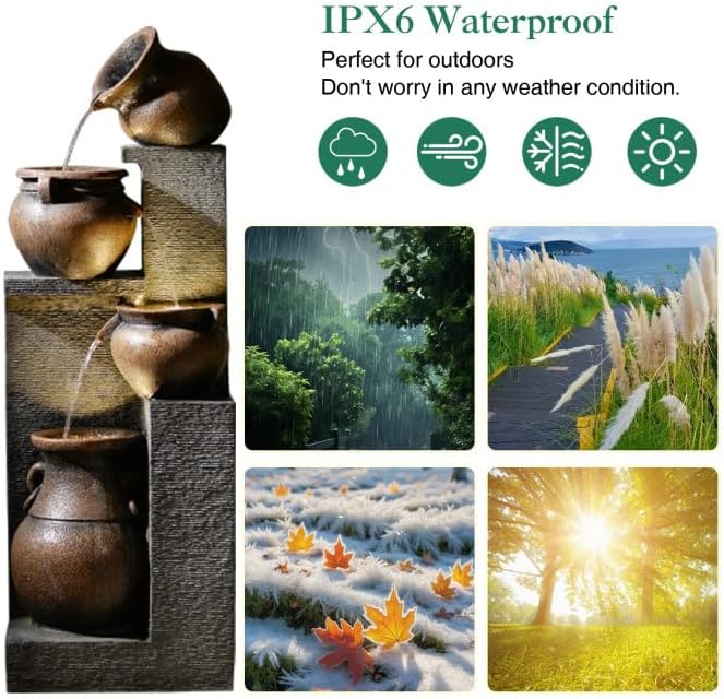 - RELAXING WATER MOVEMENT: This fuentes de agua para jardín waterfall fountain features four graceful water streams, allowing water to cascade smoothly with a soothing 75-decibel sound — easily helping to mask unwanted noise and bringing a sense of calm and tranquility to your backyard