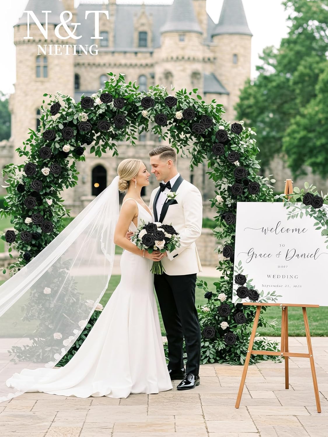 N&T NIETING Artificial Flowers Black Rose 25pcs Real Touch Flowers Perfect for for DIY Bouquets Wedding Party Baby Shower Home Halloween Decoration
