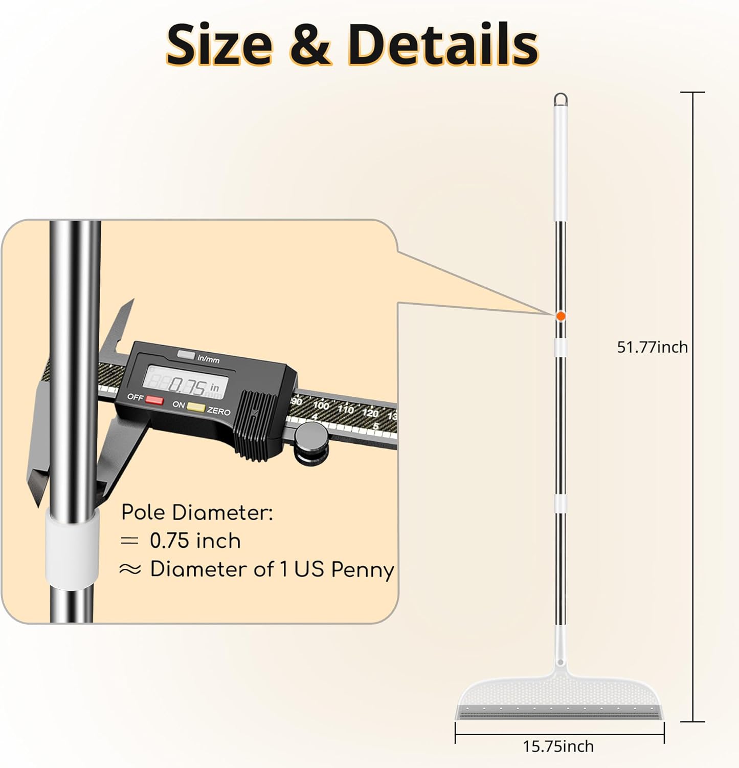 - 【3-in-1 Floor Warrior】Combines sweeping and floor squeegee functions in one rubber broom. Rust-proof stainless steel + thick TPR blades power through dust, hair, and spills. 15.7" wide head tackles dust, hair, and spills without static cling.