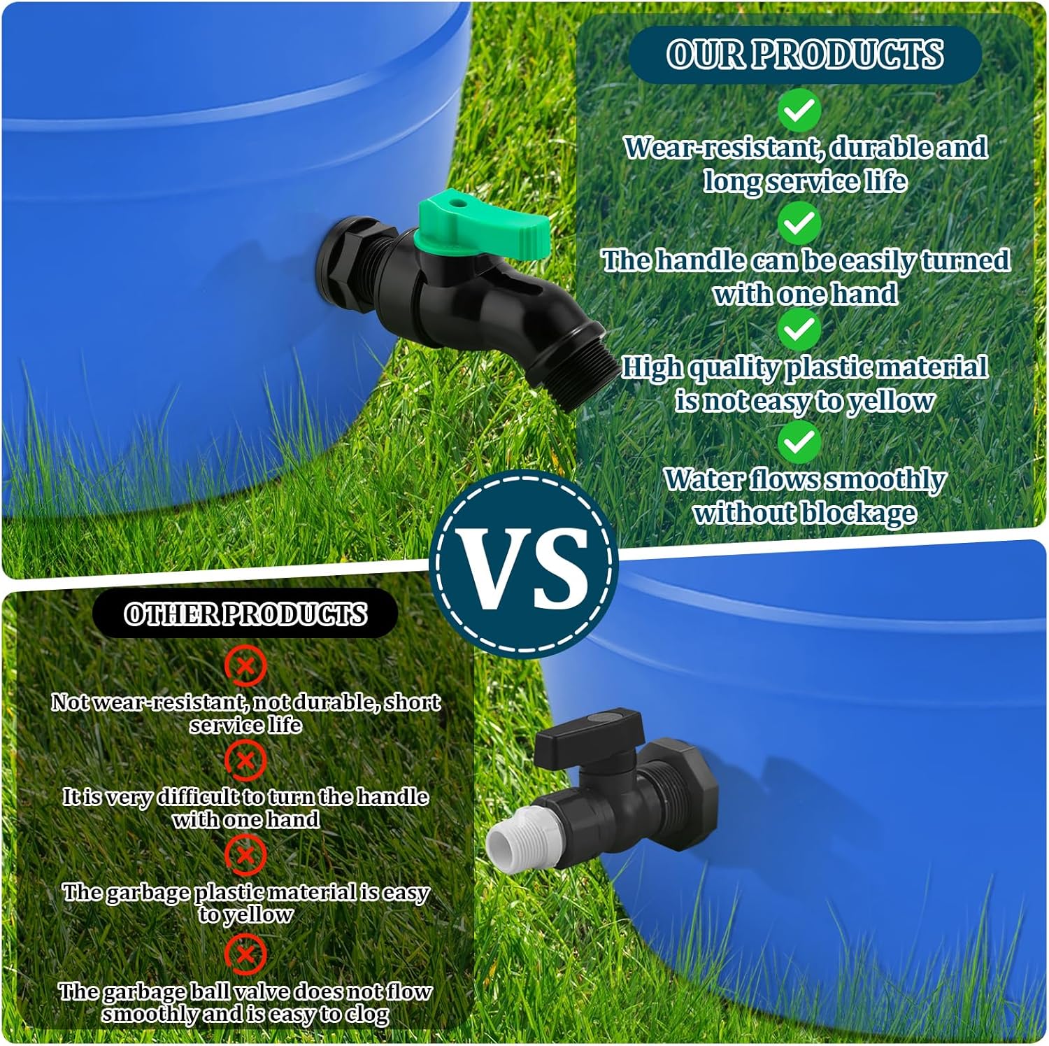 - Convenient Switch Rotation: Rain barrel spigot is easy to rotate the switch valve to open or close the Rain Barrel Spigot