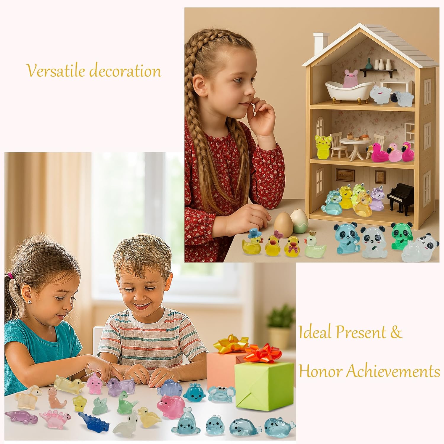 - 160 Pcs Assorted Animals: Includes a variety of miniature resin animal figurines, from tiny creatures to mystical beings, ideal for a wide range of projects. Illuminate your garden with 160 luminous mini resin animals that emit a gentle glow in the dark, adding a magical ambiance to your fairy garden.
