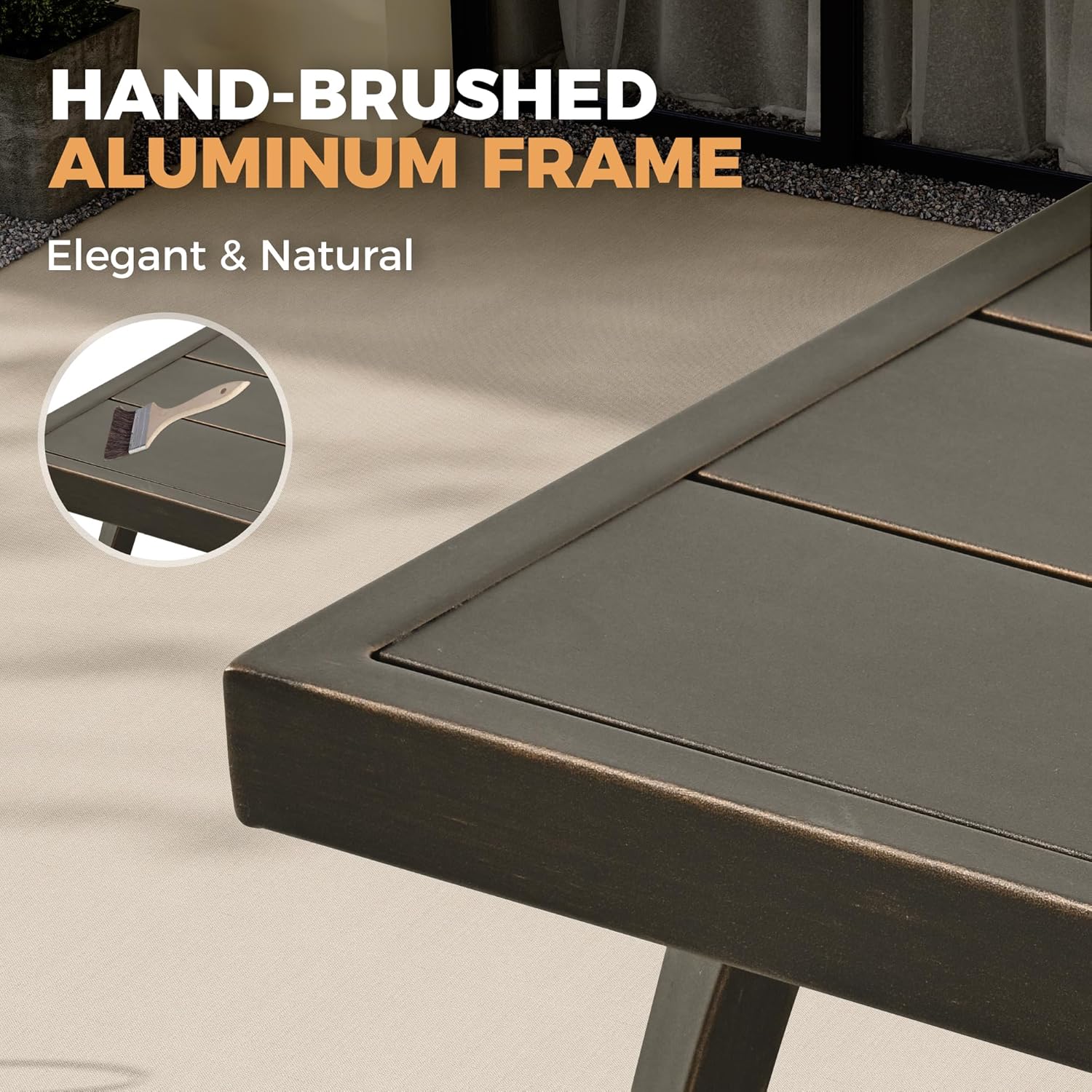 - 【Aluminum Frame】The lightweight aluminum frame of the dining set ensures that our outdoor dining table is easy to move yet will not rust. Aluminum is sturdy and will last a long time in your yard or on your deck, patio, or porch.