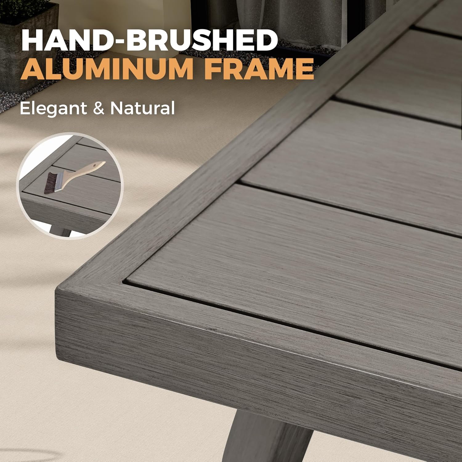 - 【Hand-brushed Coating】The tabletop showcases an artisan-crafted hand-brushed coating that enhances the natural grain while providing exceptional durability, which is smooth and wear-resistant but also very durable. Your table will stand the test of time and heat, so it’s perfect for outdoor use. You and your family can enjoy dinner anywhere.