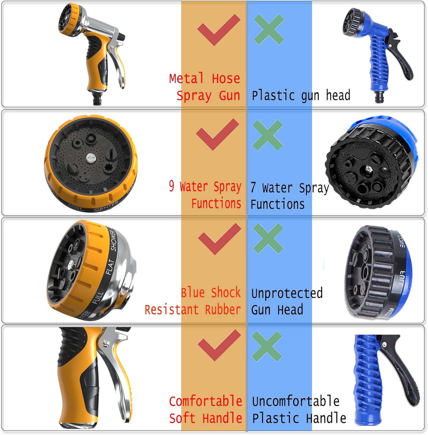 Garden Hose Nozzle, Heavy Duty Metal Water Hose Nozzle with 9 Adjustable Spray Patterns