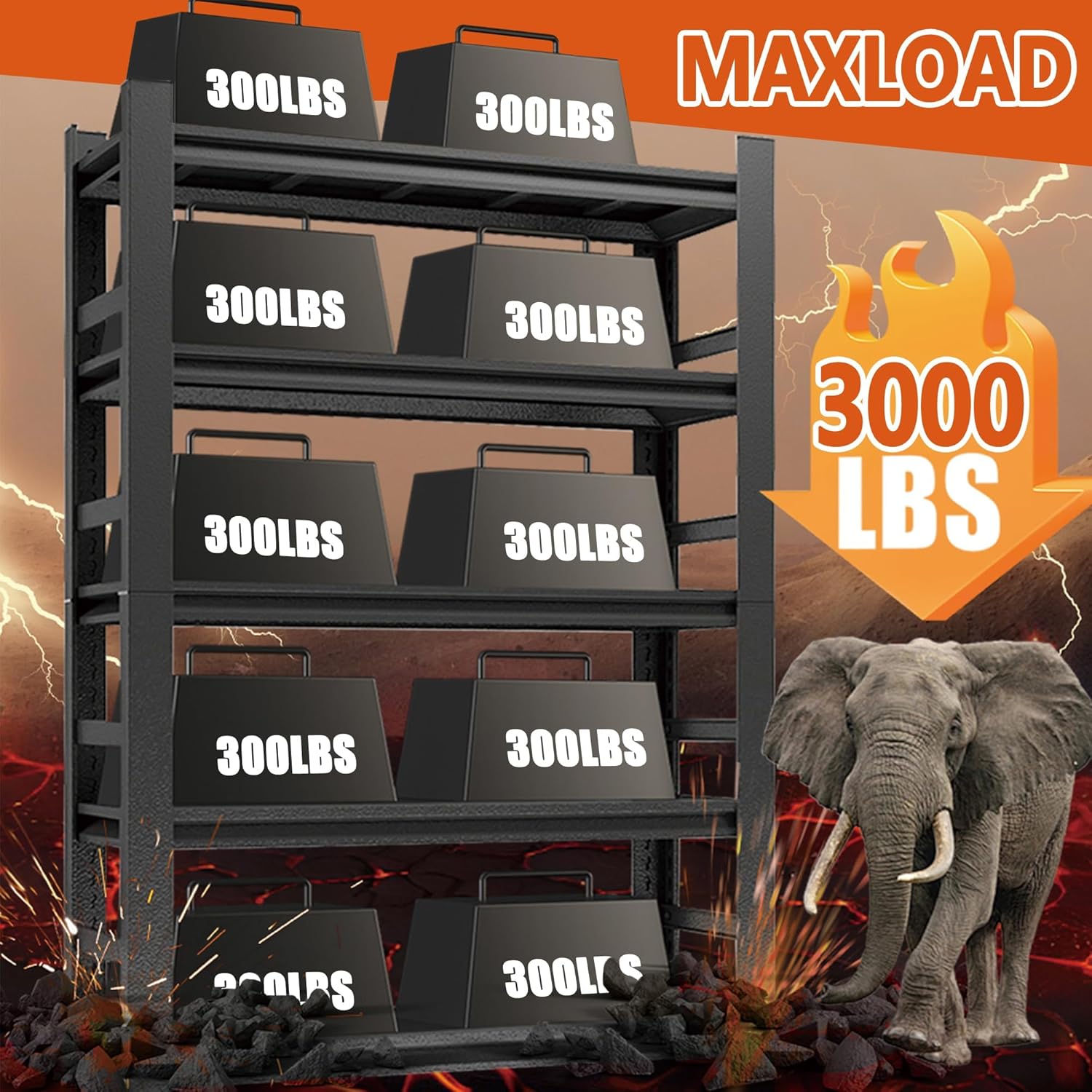 Heavy Duty 5-Tier Garage Shelf Steel Unit 3000lb Capacity | Garage & Basement Storage | Industrial Metal Shelving for Warehouse Workshop | Adjustable Rust-Resistant (72"H x 36"W x 16"D, Black)