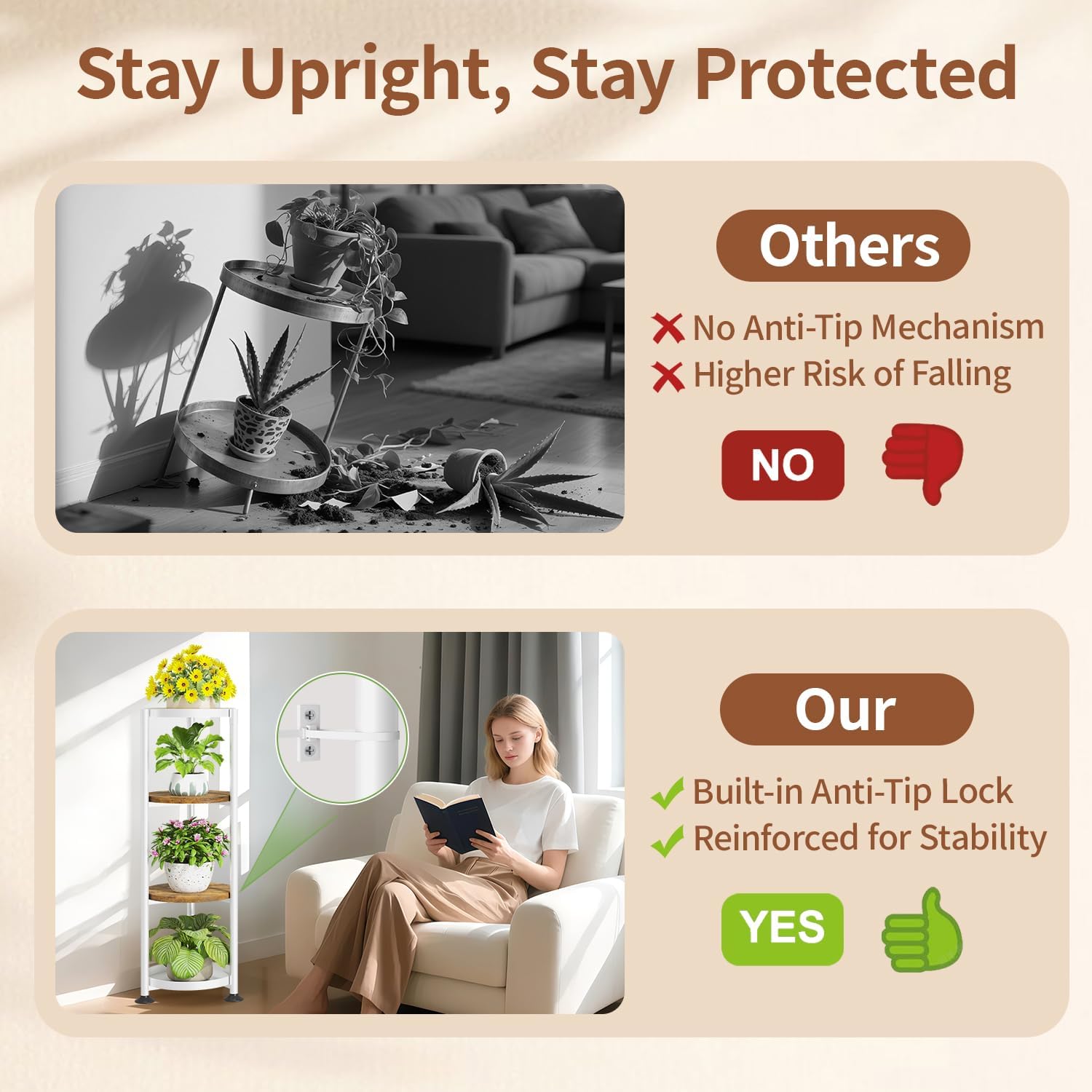 - 【5-Minute Easy Assembly】Forget about complicated instructions! Our flower stand is ready to go in just 5 minutes with only one screw—no tools or assembly headaches involved. Simply set it up and start enjoying your new multi tier plant stand in no time.