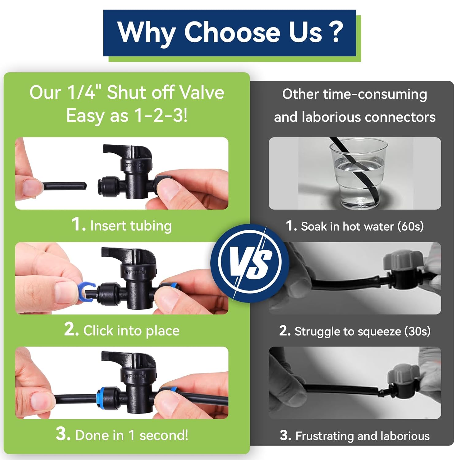 10 Pack 1/4" Drip Irrigation Shut Off Valve, Quick Connect Universal Drip Irrigation Tubing Coupling Valve, Connector Locking Fitting for Sprinkler or Drip Irrigation System