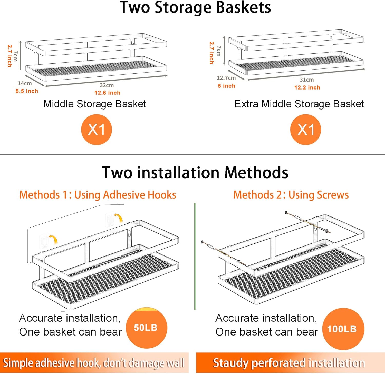 PUSDON Metal Wall Hanging Basket 2 Packs DIY Suitable for Multiple Scenes - Middle Black Guardrail Suit