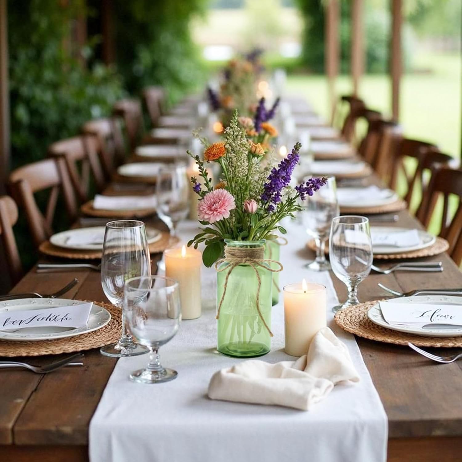 - 🏺 Commercial-Grade Bulk Vases:12-pack vintage glass centerpiece vases designed for weddings, banquets, and catering businesses. Clear mason jars offer reusable rustic charm for floral arrangements or candlelit tables