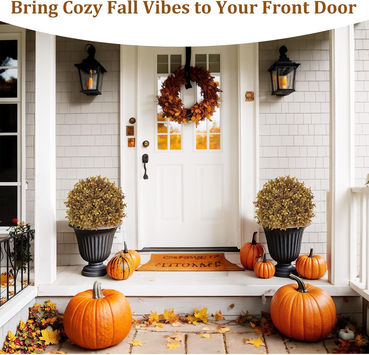 - Realistic Fall Color & Texture: Each faux topiary ball bush features realistic autumn-toned boxwood foliage in rich golden yellow, these boxwood plants look like real fall foliage. Each ball bush features a full, lifelike shape—perfect artificial outdoor shrubs for seasonal curb appeal.