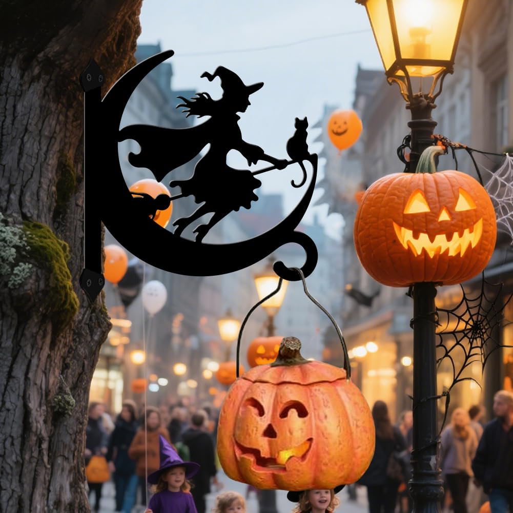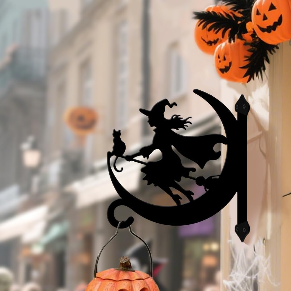 peacoblue Iron Plant Hangers Hooks for Outdoor Indoor Hanging Plants Flower Fern Pots Lantern Bird Feeder,11.6"x13.6" Weather Resistant Metal Wall Holder for Porch Garden Farmhouse(Witch and Cat)