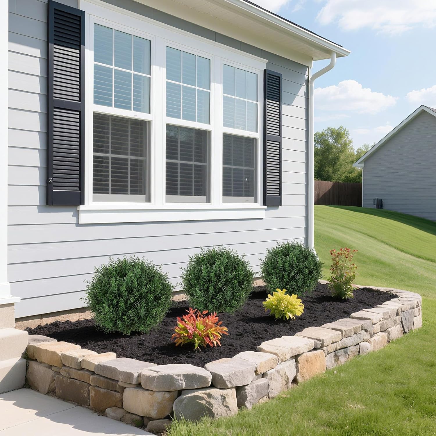 - [Hassle-Free Greenery] The artificial outdoor plants stays lush and tidy with minimal effort—unlike real trees that require constant watering, pruning, and cleaning up fallen leaves. No bugs, no wilting, and no seasonal mess. Whether you're decorating a vacation home or simply want year-round greenery without the hassle, the fake bushes offer all the beauty of nature—without the chore.