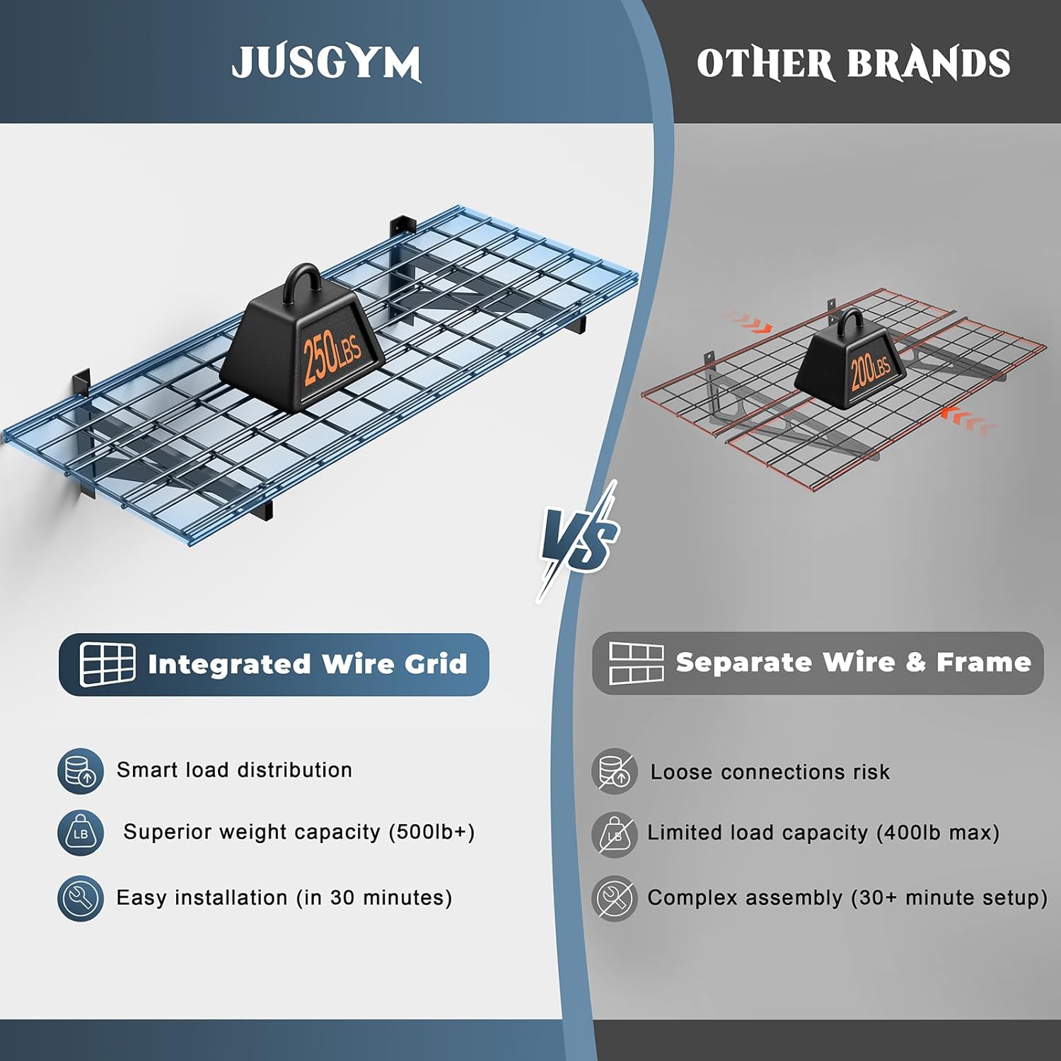 - 🛡️【Worry-Free Support】- Your satisfaction is our priority! Jusgym garage organization shelves come with 24/7 customer service and a 1-year limited warranty. If any part fails, contact us for instant replacements—guaranteed!