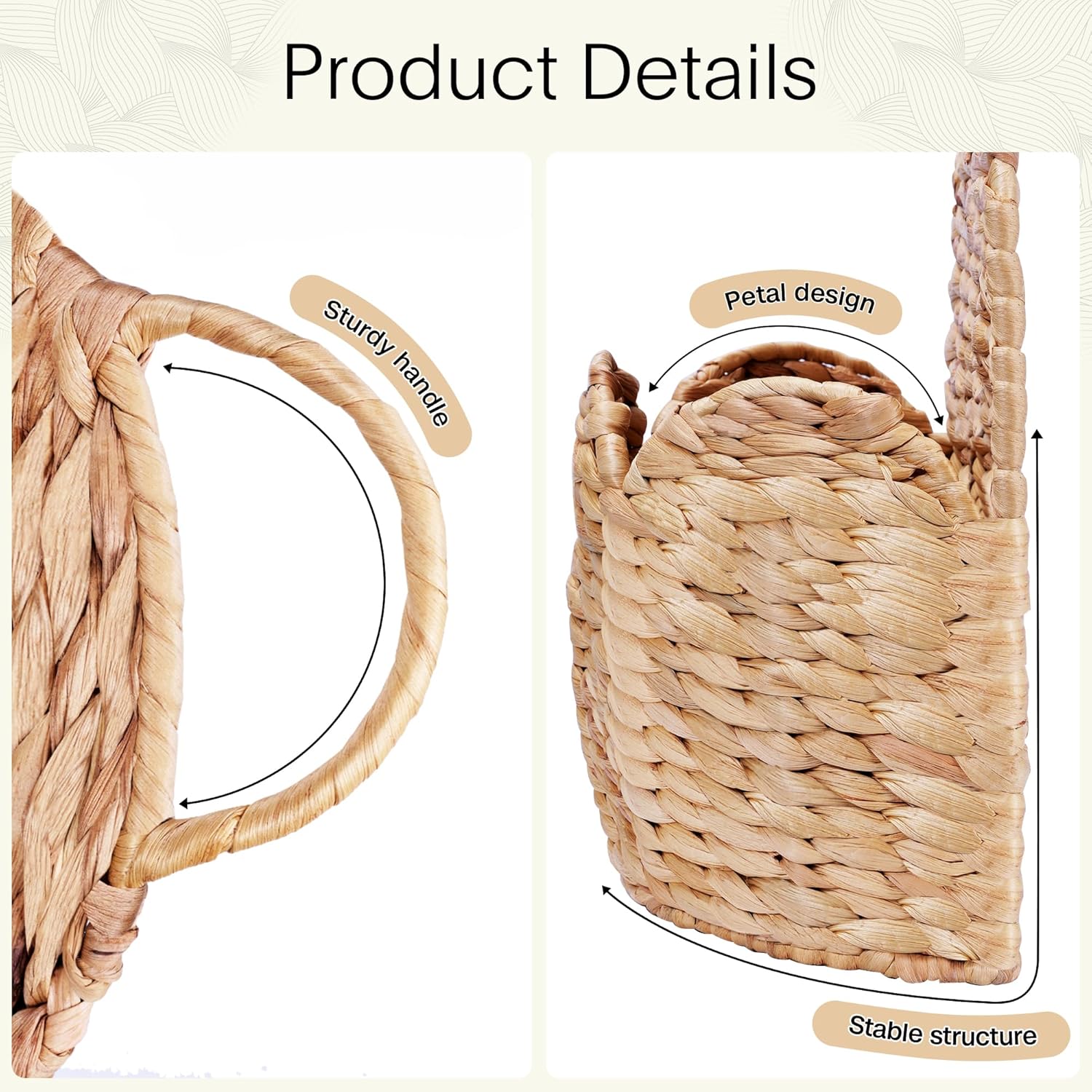 - 【Natural & Renewable Material】Meticulously handwoven from naturally sourced water hyacinth vines, each piece celebrates natural craftsmanship. Every fiber displays unique texture and character, ensuring no two baskets are exactly alike. Durable and breathable, it complements any home decor style with its earthy appeal.