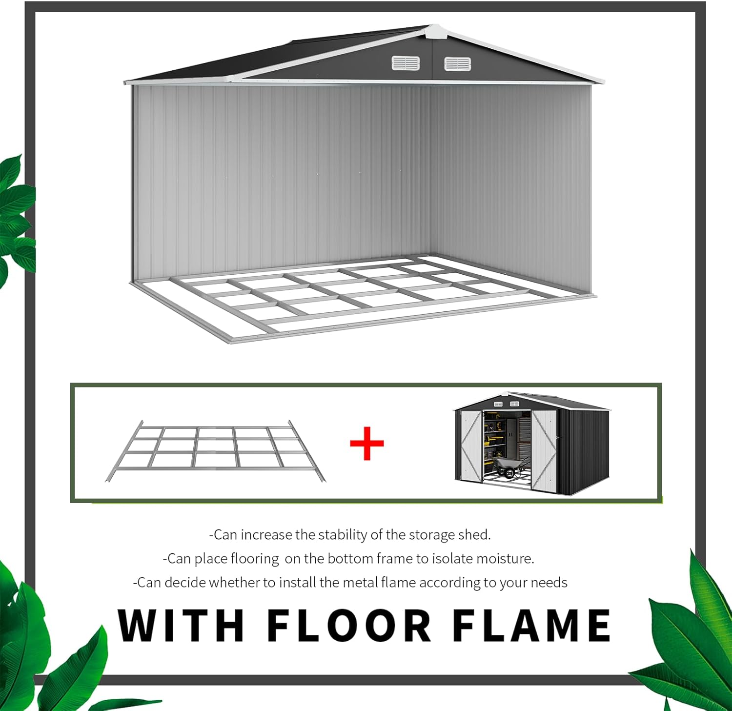 Aoxun 9.4x7.3x6.5 FT Outdoor Storage Shed with Base Outdoor Metal Shed for Tool, Garden, Bike, Placed in Patio, Garden Base Included (Black)