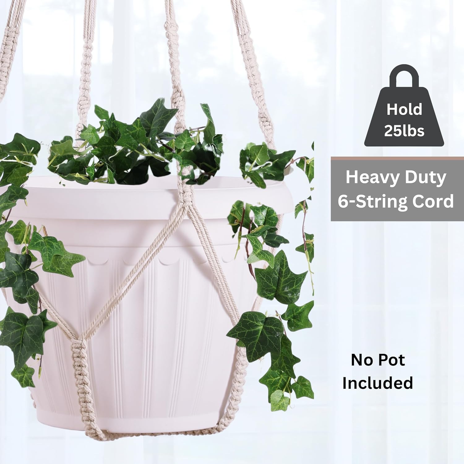 - 【❤ Giant XXL Plant Hangers x 2PK】-Enhance your space with our hand-made macrame plant hangers, each boasting an impressive 55-inch length and 6-cord sturdy thread. Designed to accommodate substantial 12-15 inch flower pots, this hanging planter features a clean design without tassels. (Note: Plant or Pot not included.)