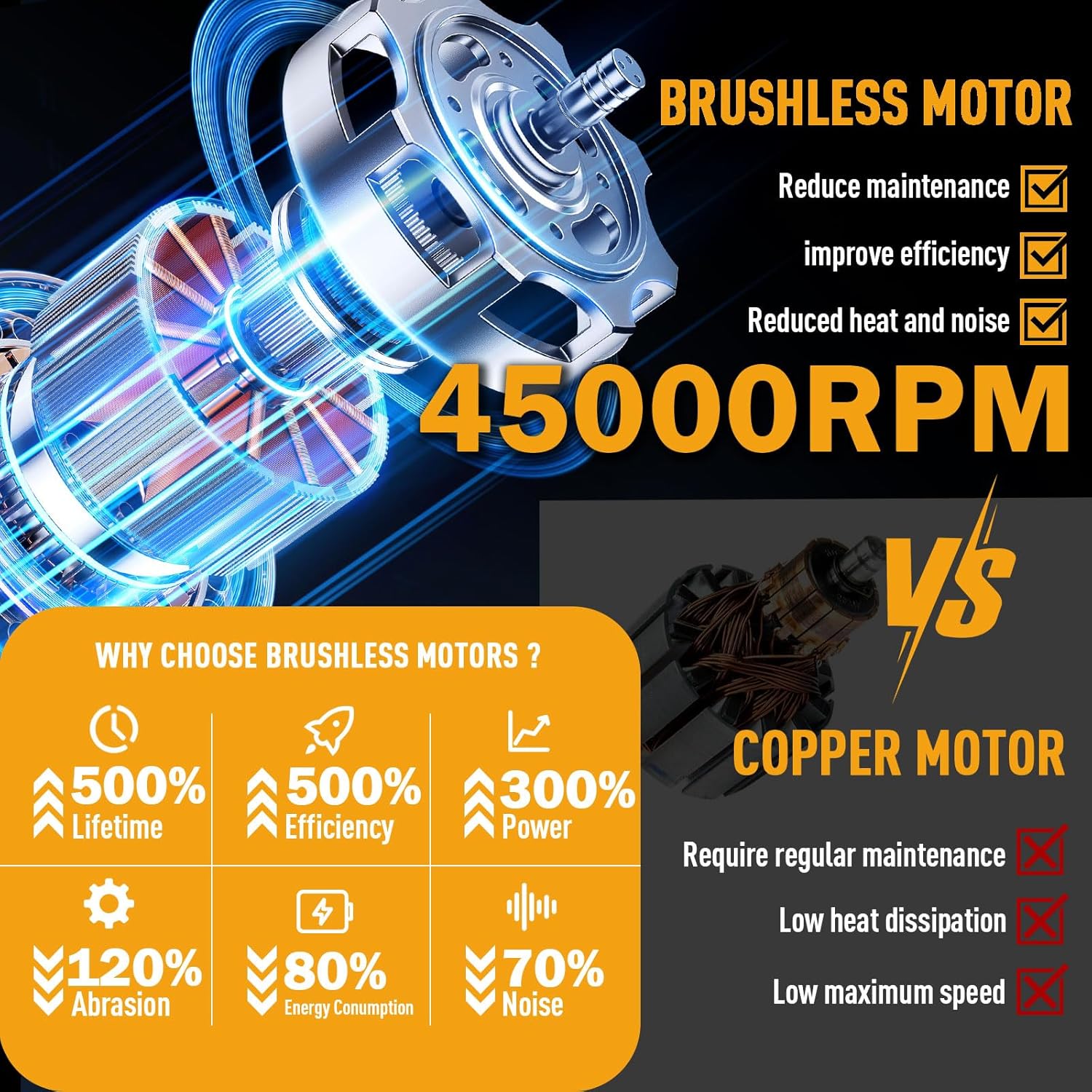 - ăAdvanced Axial Fan Technology and High Performance Brushless Motorsă: The Sihuird Leaf Blower uses a High Efficiency Brushless Motor, Maximum setting 45000 rpm, Adopting advanced axial fan technology, it provides greater air volume and more heat dissipation than traditional centrifugal fans. And equipped with 12 turbine blades and turbocharging function, providing higher airflow. Air volume and wind speed up to 720CFM and 210MPH.