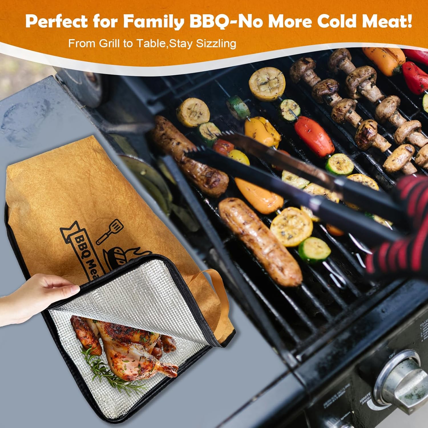 BBQ Blanket for Resting Meat,Reusable Smoker Grilling Bag Insulated Resting Bag with Wide Mouth,BBQ Accessories for Large Brisket,Beef,Turkey,Pork (21in)