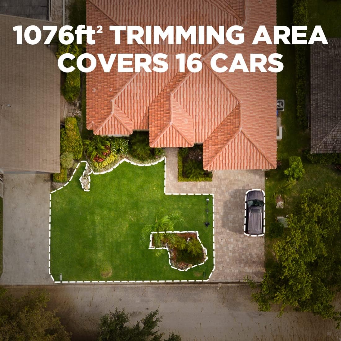 - 【Covers Up to 1076 ft² Per Charge】On a full charge, this cordless grass trimmer can cover up to 1076 square feet, about the size of 16 parked cars—perfect for most home lawns.