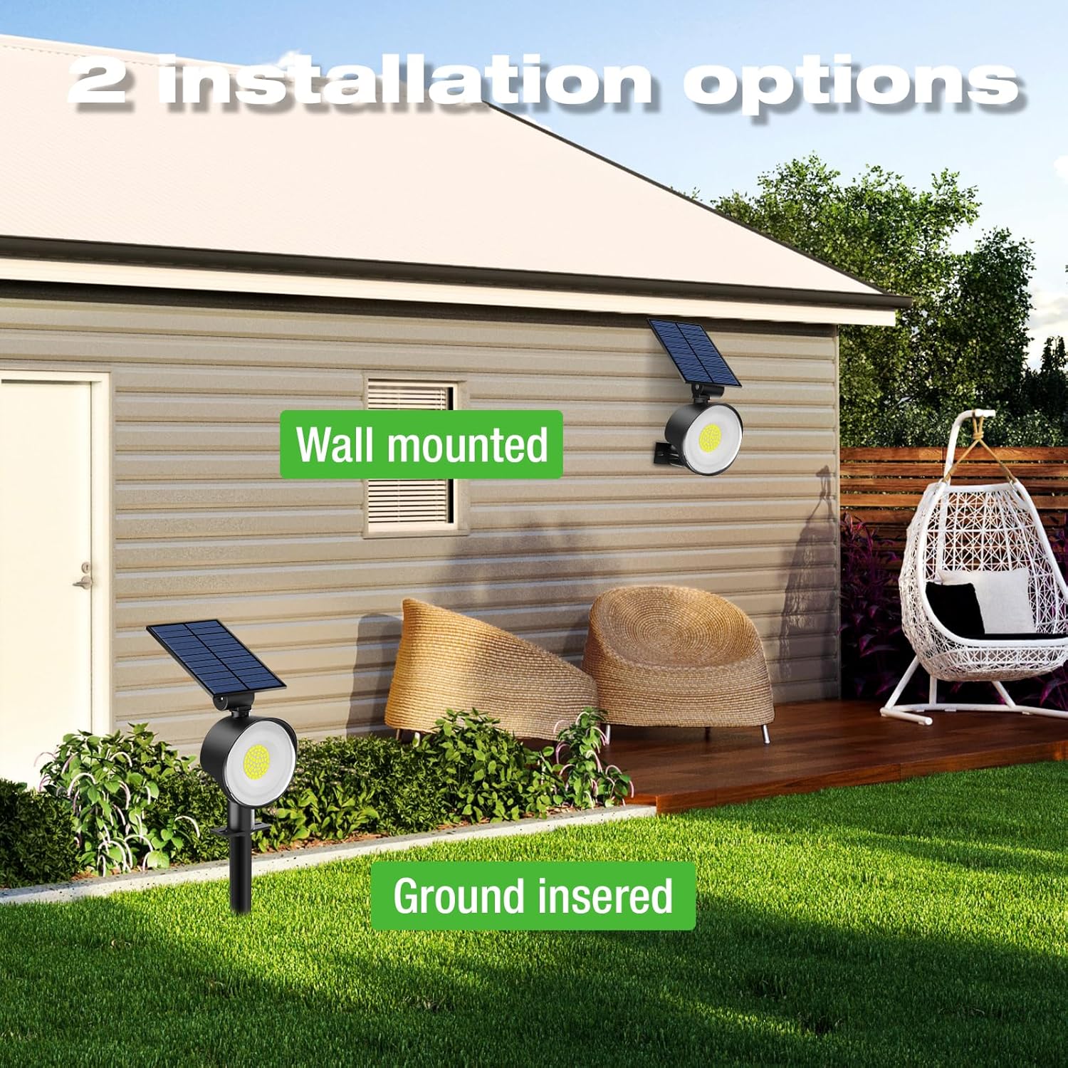 - Easy to Install & 2-in-1: Plug it into the grass to turn it into a landscape spotlight; screw it to the wall to turn it into a practical wall lamp. Easily illuminate trees, sculptures, flagpoles, driveways, etc. Simple test before installation to ensure perfect operation (If you turn it on during the day, you need to cover the solar panel to light it up)