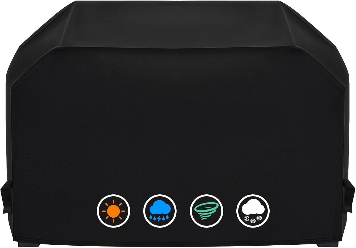 - Waterproof Design: Made of 600D Heavy duty oxford polyester with water resistant PVC coating, the tough fabric provides a powerful guard against any weather: Snow,Hail,rain and wind etc,and gives your grill all year round protection.