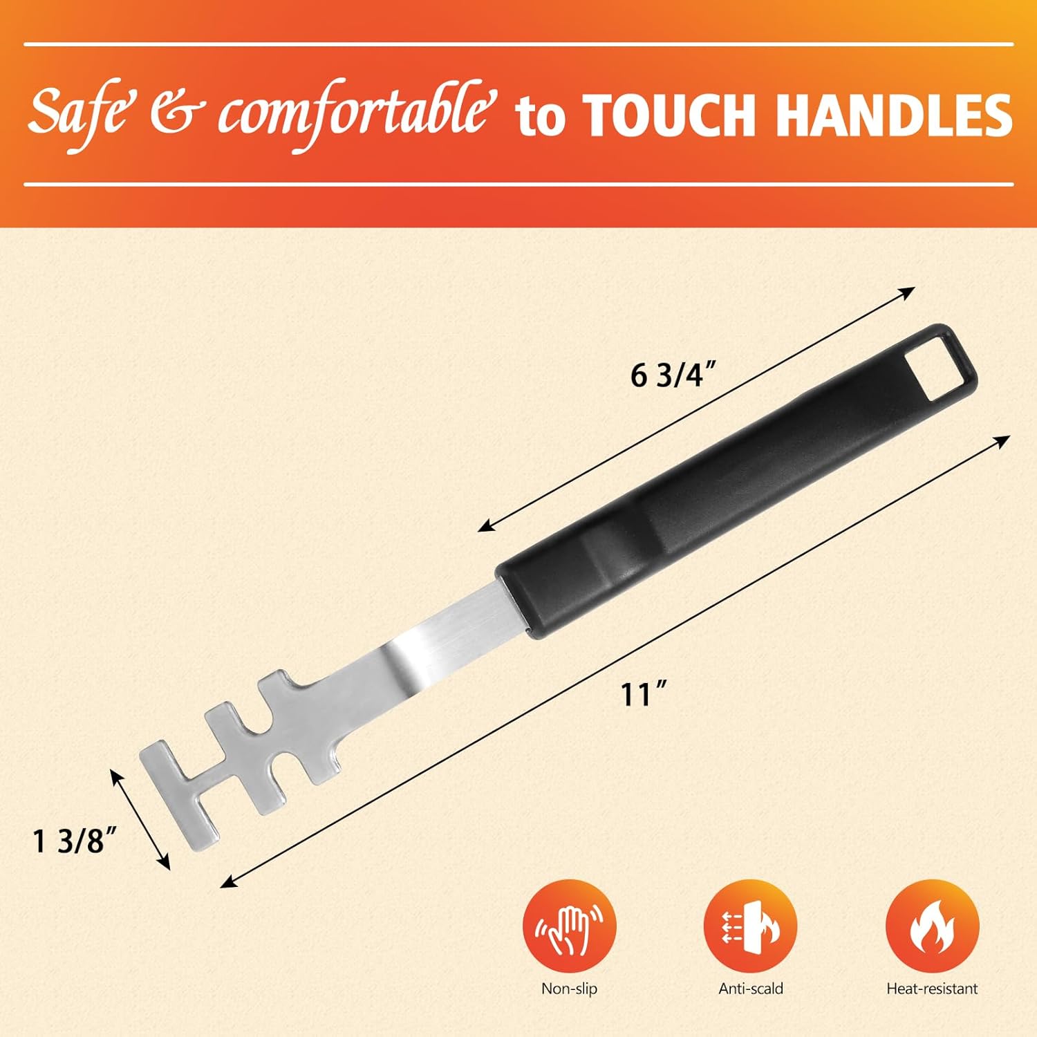 - EXTENDED NON-SLIP HANDLES🔥Extended dip moulding design, effective heat insulation and anti-scalding, unique fingerprint groove design to enhance the grip more ergonomic, lifting the hot grill is stable and energy-saving.