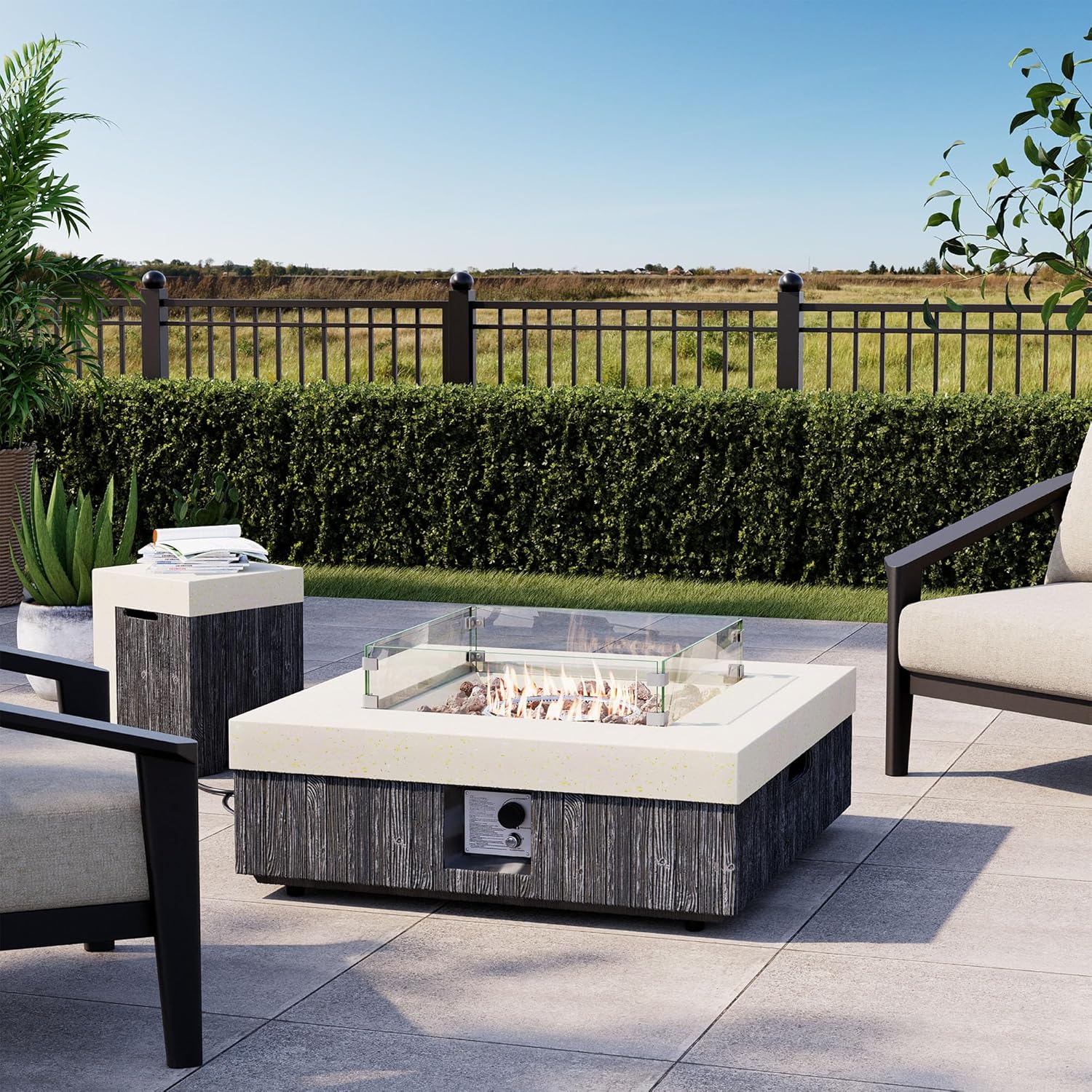 - Multi-functional Fire Table & Tank Cover: With a 10-inch widened edge, it securely holds wine glasses and small dishes, while the tank cover doubles as a sleek side table. Perfect for backyard gatherings—enjoy warmth, convenience, and style in one.