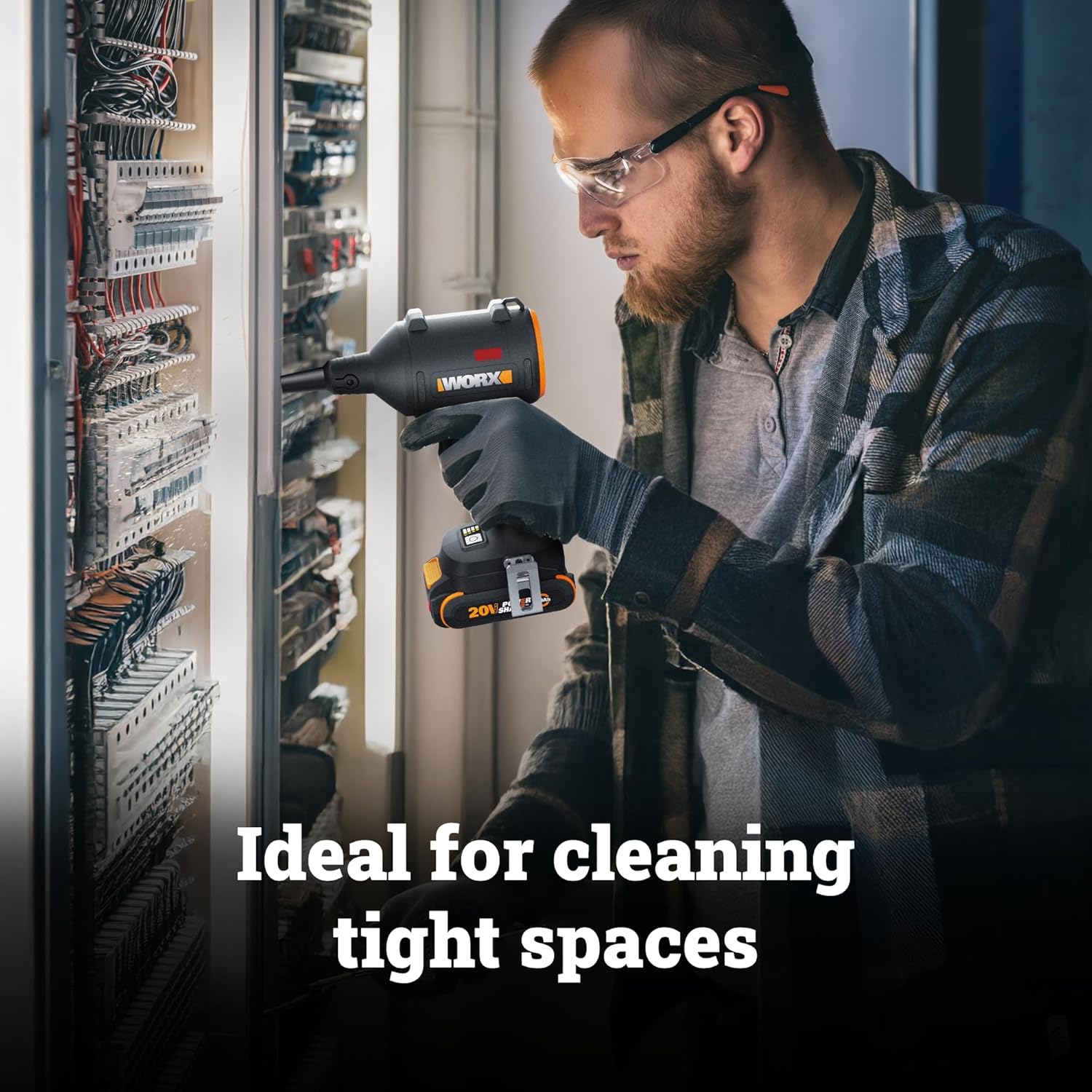 WORX Cordless Blower/Inflator, 20V 39 CFM 470 MPH Brushless High Speed Portable Dust Cleaner for Workshop, Lawn, Yard, Home, Lightweight Handheld Blower, Tool Only, PowerShare