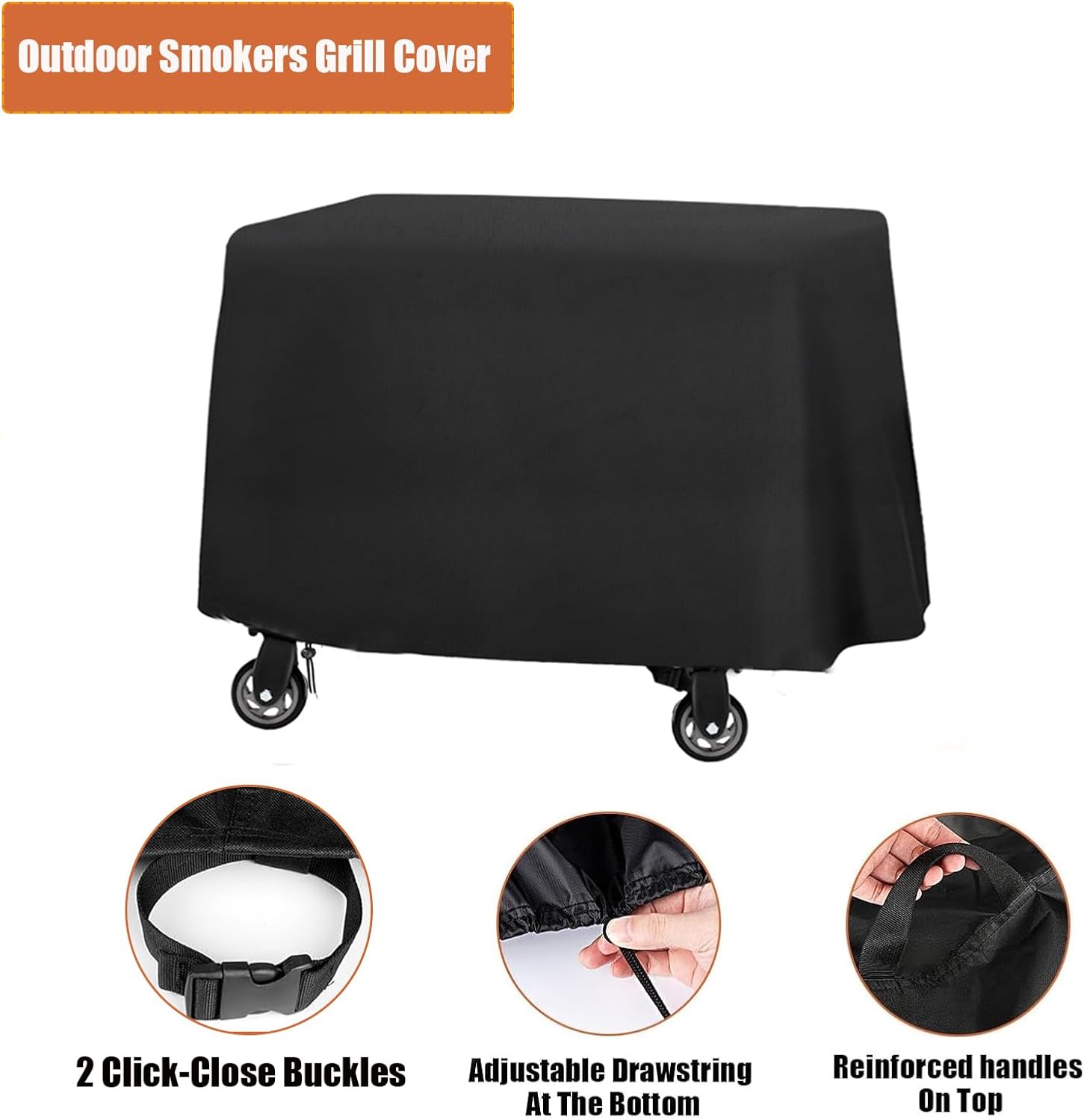 - Wind-proof & Stable design: Unique fit cut , elasticated drawstring at the bottom, Velcro at the side, windproof buckle straps, can be easily tightened and fixed to the base of the wood pellet smokers to ensure that the cover is not easy to be blown over or shifted in high winds, and guard your grill tightly