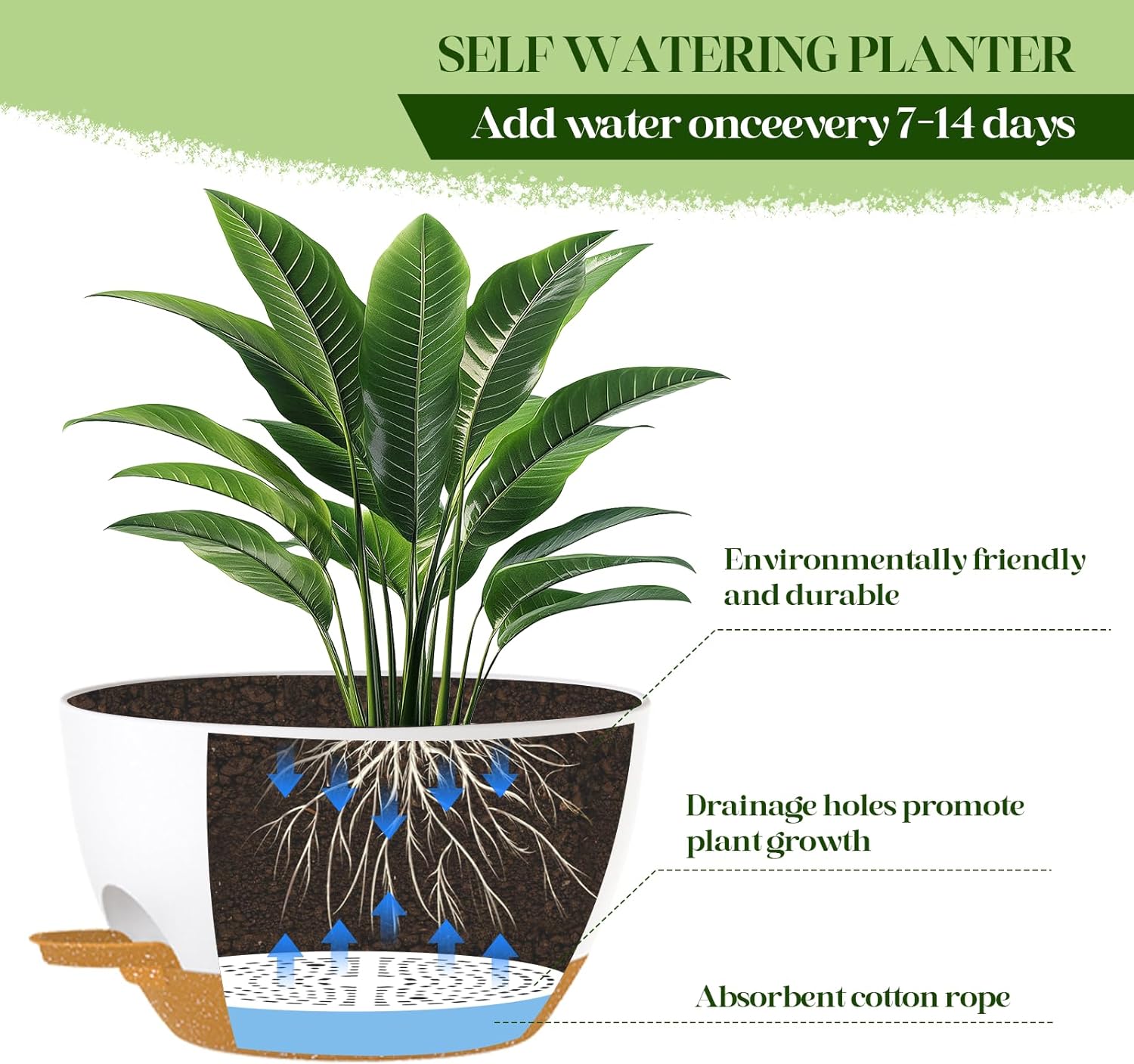 - ā 2 Large Self-Watering Planters: Double the value! Includes two 10-inch wide plastic hanging planters with built-in self-watering reservoirs to reduce the need for frequent watering and keep plants healthier.