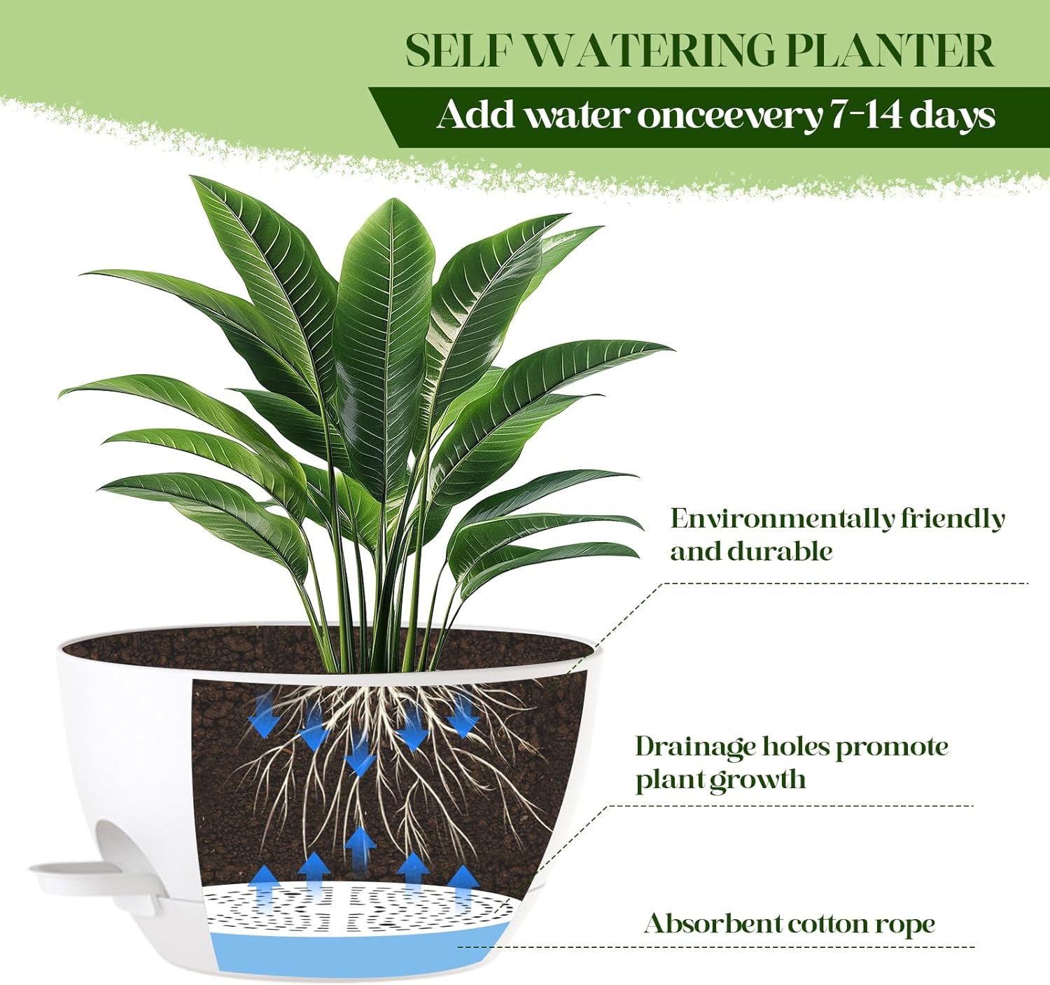 - š§ EASY WATER MANAGEMENT: Patented self-watering system delivers water to the roots for up to 2 weeks! Includes water dispenser for easy filling and removable reservoir for easy cleaning.