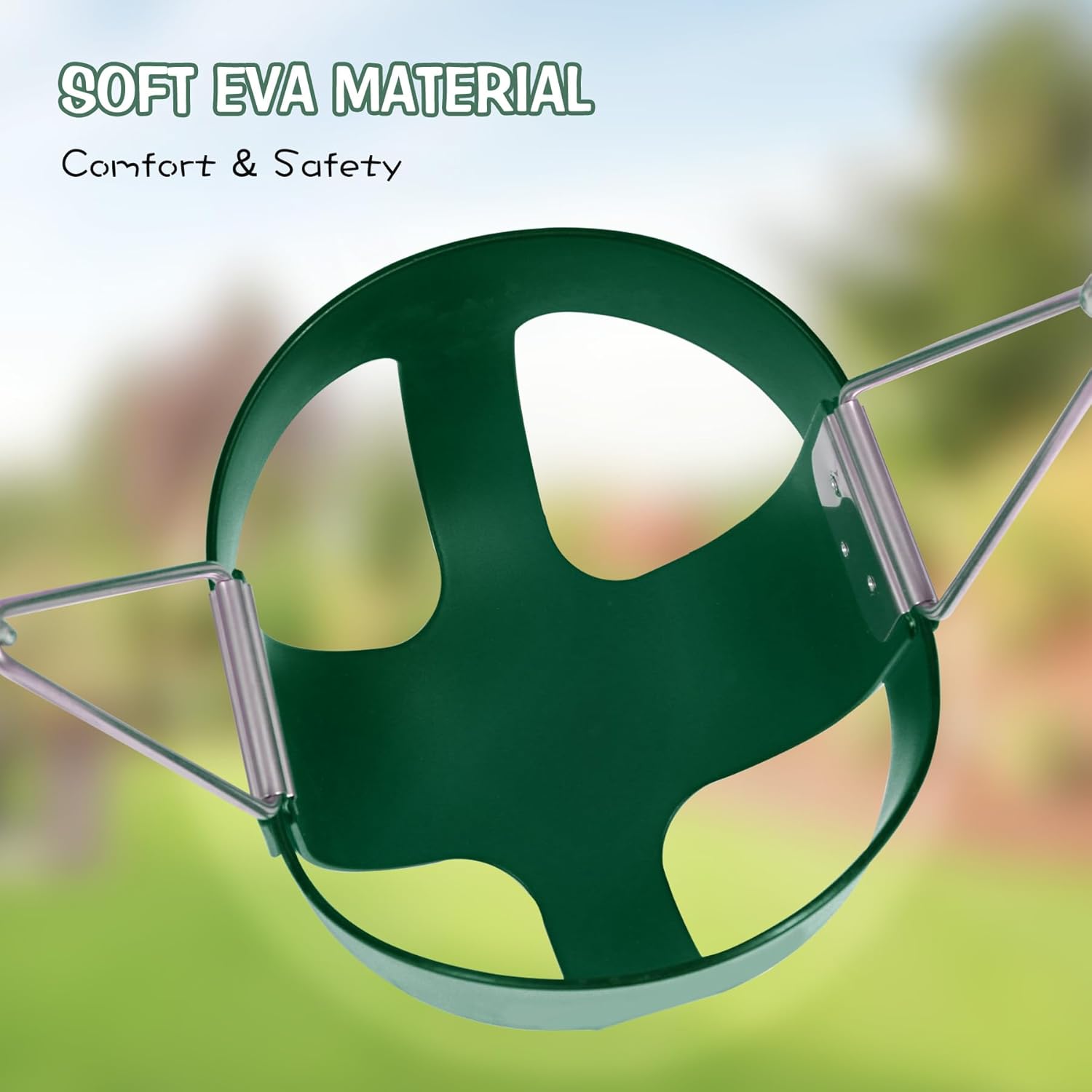 - Premium Quality and Security: Our baby swing is meticulously crafted from premium EVA and stainless steel, ensuring a skin-friendly, anti-corrosive, and sturdy construction. With its high back design and multi-fixing feature, it guarantees hours of fun and years of play. The maximum load capacity can reach up to 330lbs/150kg.