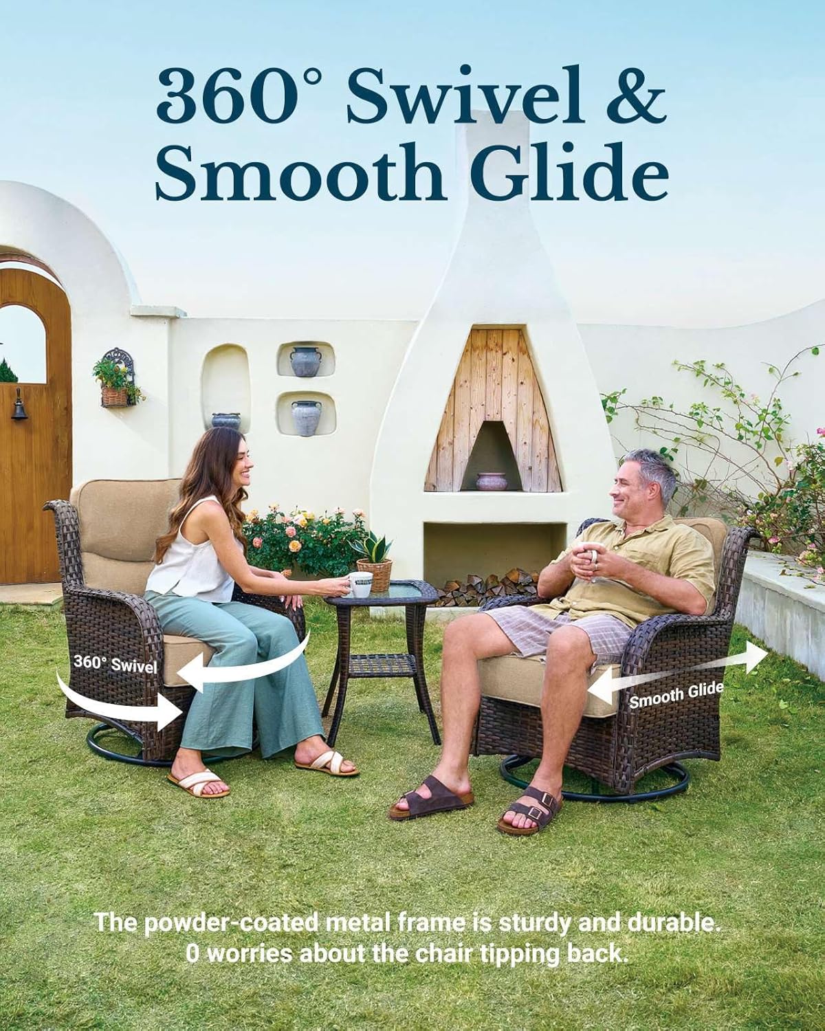 - 6-Inch Extra Thick Cushion: Each cushion of our patio swivel chair and sofa is made of 6-inch thick, 28D high-density foam, so you get 40% more comfort, 30% better bounce, and 2x the durability of standard 4-inch cushions. No sagging, just support
