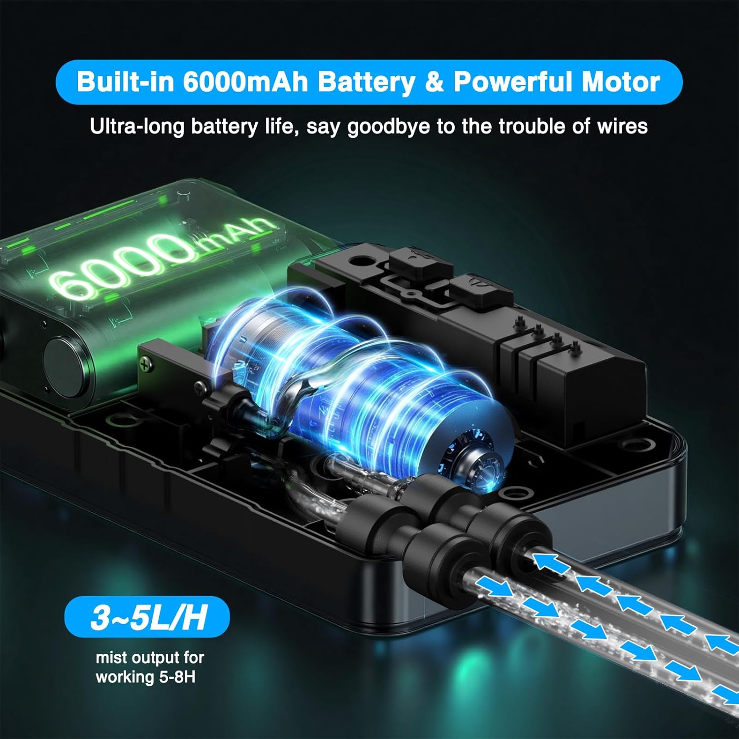 - 🔋【6000mAh PCS Pump & Perfect for Outdoor】Say goodbye to the trouble of wires! The portable misting system is equipped with a 6000mAh rechargeable water pump and it can be charged via Type-C cable, it delivers 5-8 hours of continuous misting after fully charged. A single charge provides hours of refreshing relief, let you enjoy the fun of misting anytime and anywhere at places like patio, beach, swimming pool, camping, picnics, golf cart, boat and more.
