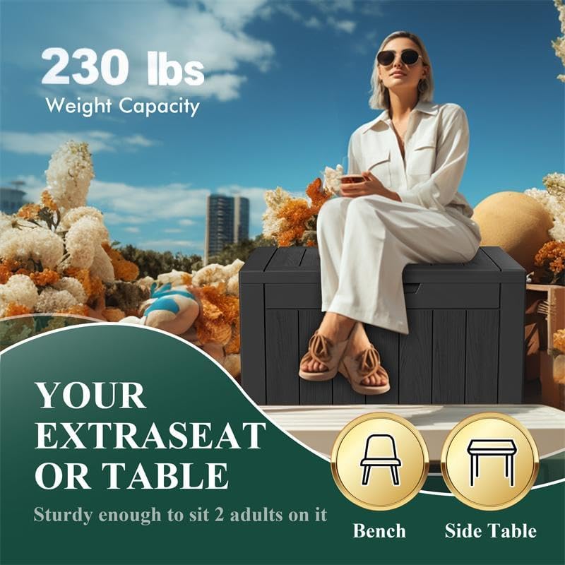 - ADAPTABLE TO VARIOUS SCENES: Whether used as an indoor laundry storage chest or an outdoor deck box container for items like outdoor cushions, garden tools, pool accessories, and sports equipment, this patio storage box provides abundant space. It's also versatile as a side table, yard seat, storage bench, or footrest