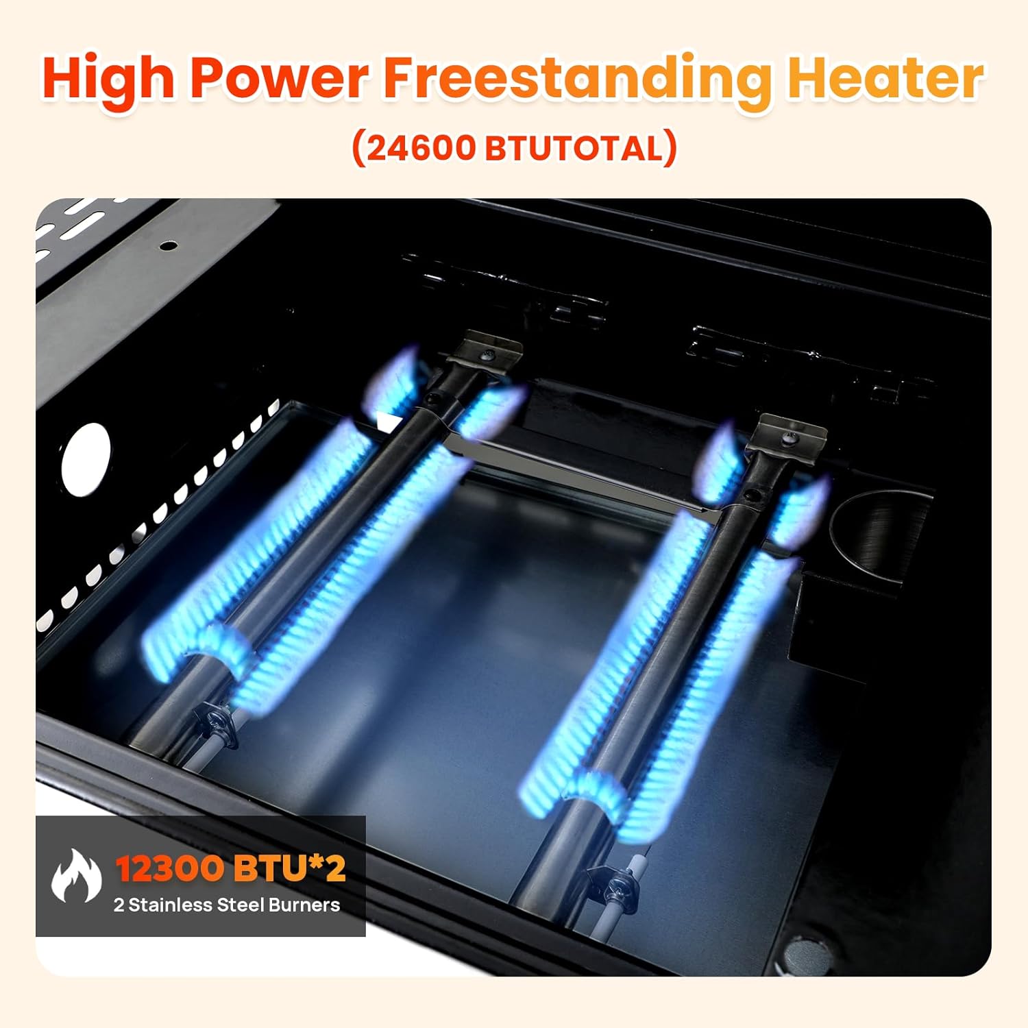 - 🔥 High-Performance Stainless Steel Burners - This propane gas grill features 2 powerful stainless steel burners delivering a total of 24,600 BTU per hour. With a built-in piezoelectric ignition system, you can enjoy instant start-up—just push and turn the control knob. It’s reliable, efficient, and ready to fire up your outdoor meals in seconds.
