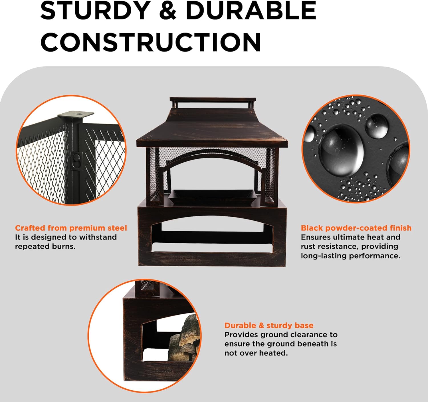 - Premium & Durable: Made of high-grade steel with powder coating, this 17.7"x32.3"x36.8" chiminea outdoor fireplace resists heat/rust for years. Ideal fire pit for outside wood burning, built for all-season use.