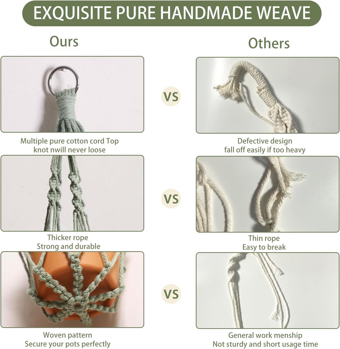 - HANDMADE WEAVING CRAFT - Hanging plant holders made from eco-friendly recycled cotton rope and metal ring, It has a strong flexible woven design, sturdy and durable, accommodates planters of all shapes and sizes, you can take them home for your plants with confidence