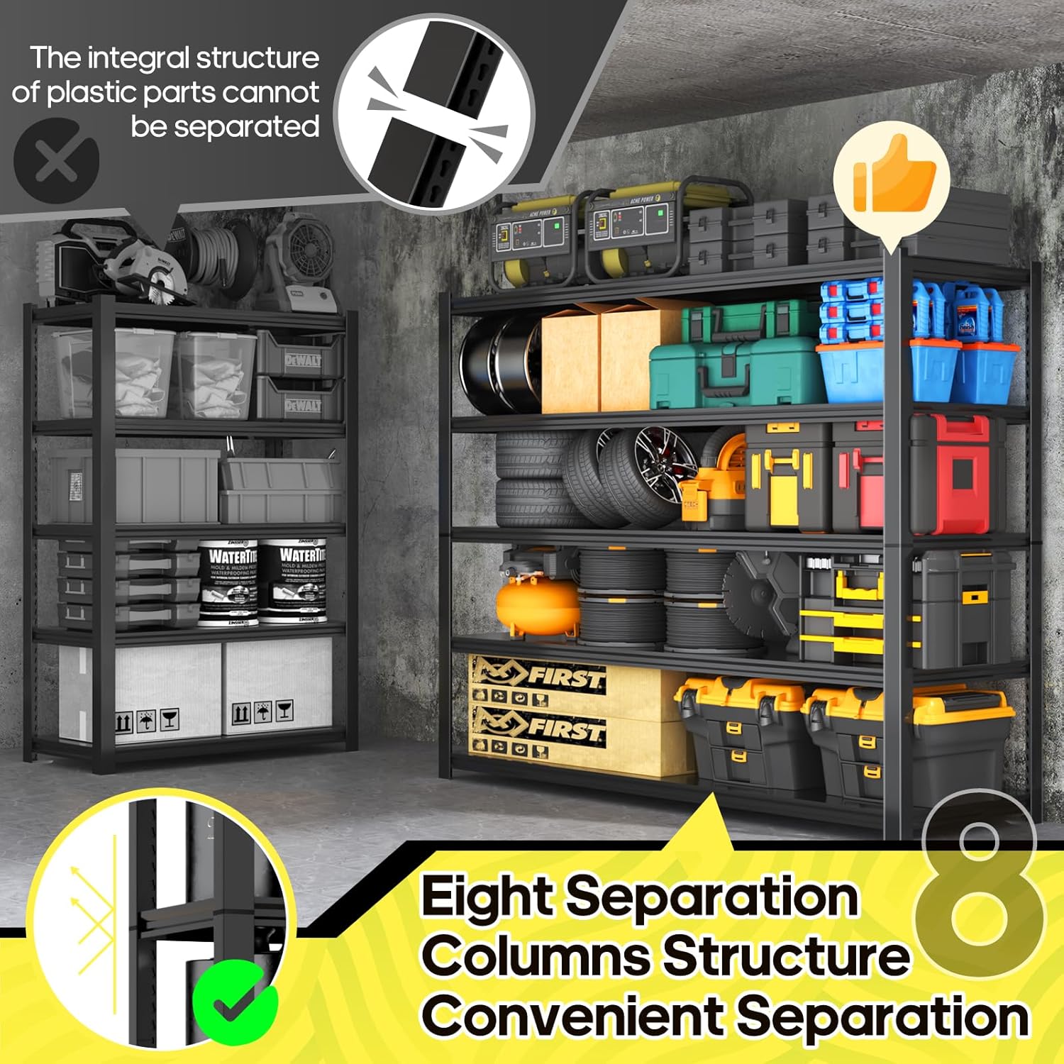 - ă3000 lbs Weight Capacityă Each tier holds up to 600 lbs, total 3000 lbs capacity, making it ideal for garage storage shelf heavy duty needs. Great choice for metal storage shelves, industrial shelving, and 59.8inch wide shelving units for long-term heavy duty use.