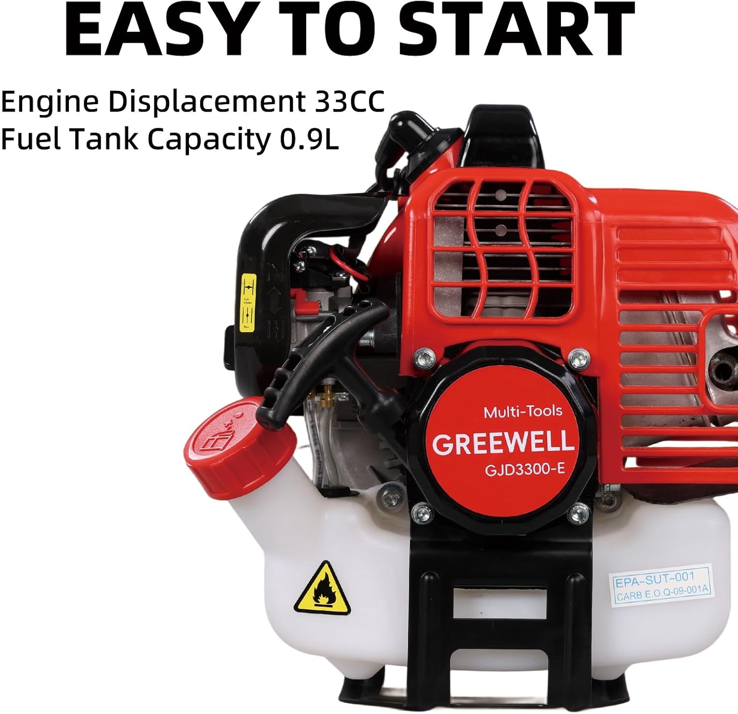 - EPA-compliant 33cc 2-stroke engine delivers 7,500 RPM, giving this gas brush cutter professional-grade muscle to slice through dense brush and stubborn weeds faster than any standard string trimmer.